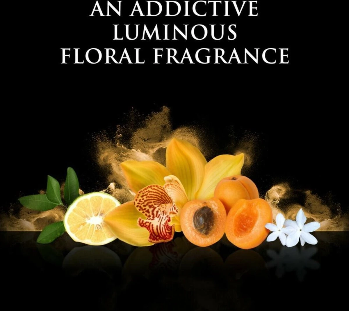 - Hartnoten: Orchidee genaamd Golden Symphony , die wordt gemengd met freesia en Sambac jasmijn bloemen