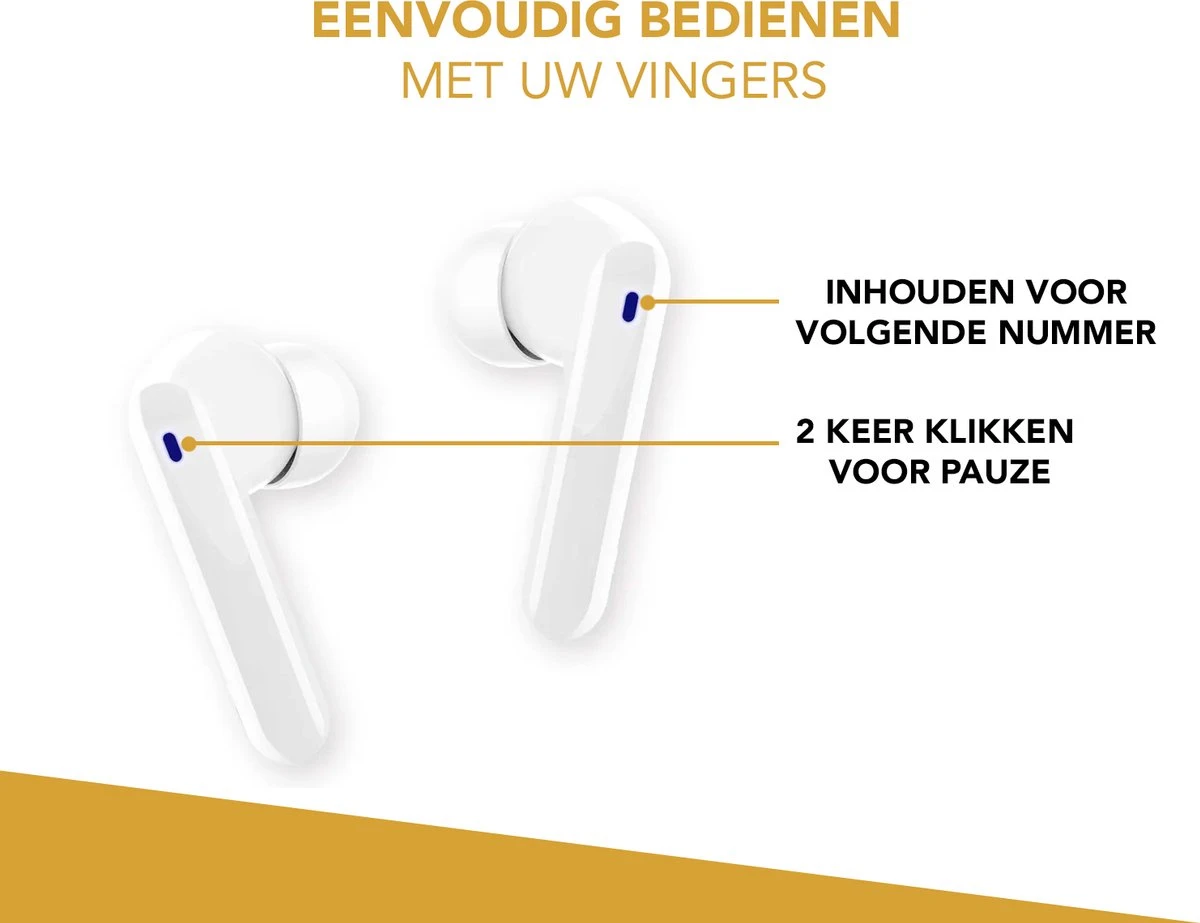 In één van de oortjes is een microfoon aangebracht zodat u niet uw mobiele telefoon bij de hand hoeft te hebben om gehoord te worden door uw gesprekspartner. De Luxeroyal Earbuds zijn voorzien van noise cancelling waardoor u overal en op elk moment een telefoongesprek kunt voeren.