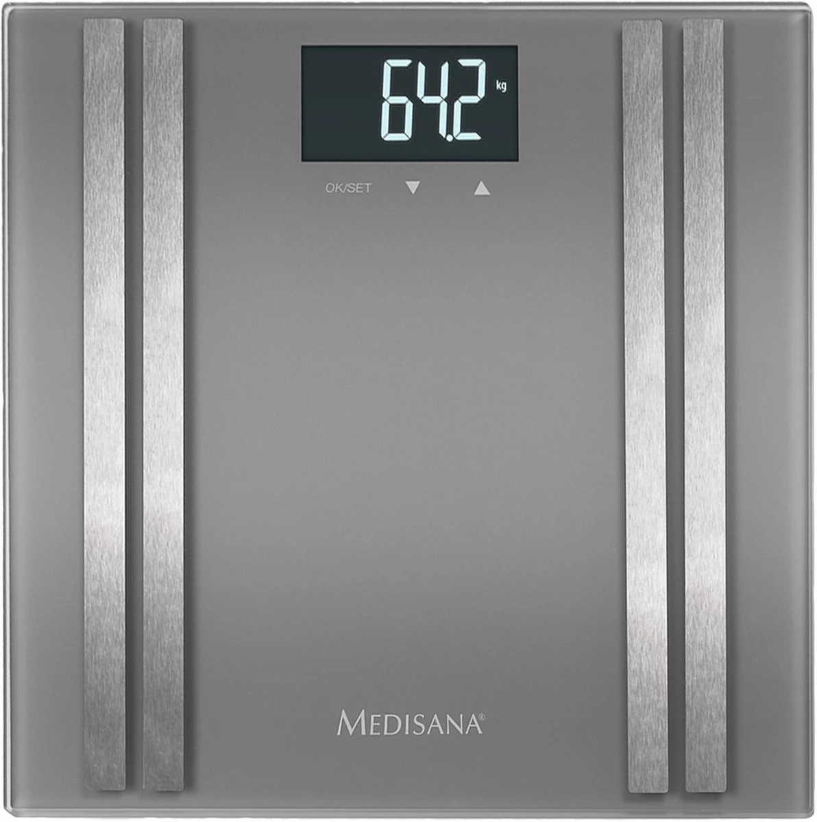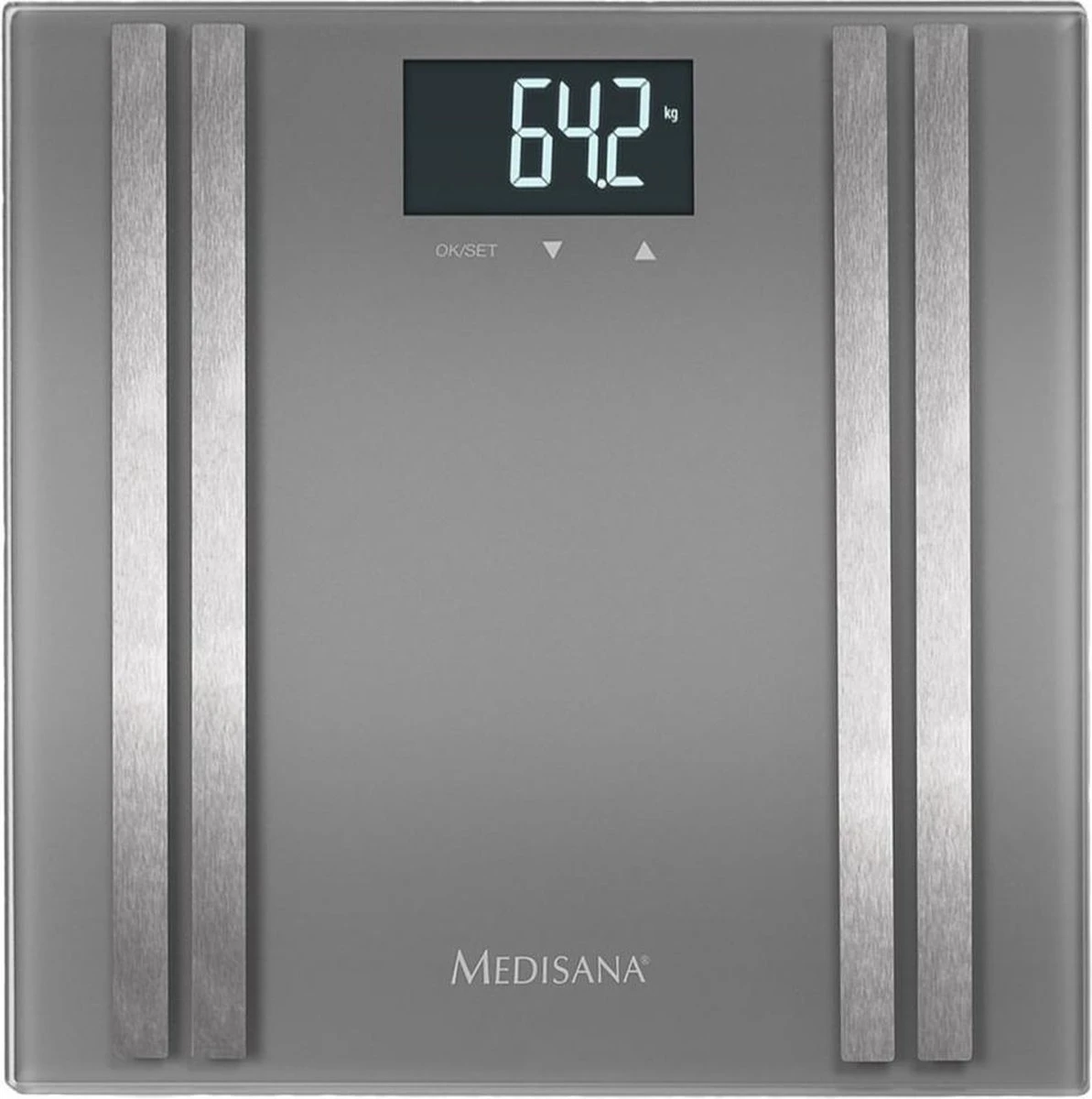 De Medisana BS 476 personenweegschaal behoort tot de nieuwste generatie lichaamsanalyse weegschalen van Medisana en bevat dan ook de nieuwste technische snufjes die Medisana door jaren aan ervaring heeft ontwikkeld. De geborstelde RVS-elektroden meten met uiterste precisie de weerstand door de beide voeten en stellen zo zeer nauwkeurig het vet- en vochtpercentage vast en berekenen de spier- en botmassa.