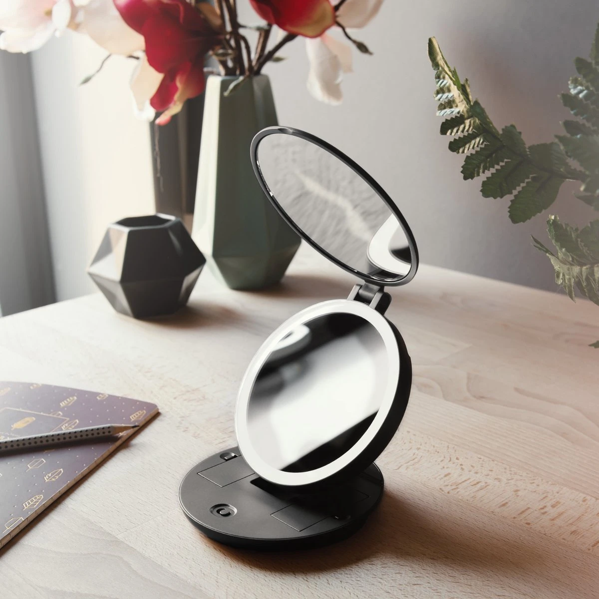 - STRAK DESIGN: Deze handspiegel is niet alleen elegant, maar ook eenvoudig te gebruiken. De inklapbare spiegel is voorzien van 2 spiegels en heldere ledverlichting voor alle verzorgingsbehoeften.