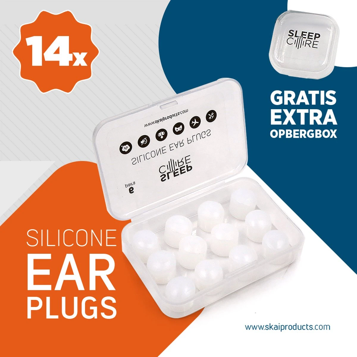 Geluidsoverlast? Snurkt je partner of slaap je licht? Geniet van een goede nachtrust of een optimale concentratie. Met deze 14 stuks gepatenteerde geluiddicht SleepCore® oordopjes slaap en werk je altijd goed door, ook als je veel last hebt van omgevingslawaai, zoals op een festival, feest, discotheek, ook ideaal als party plug. En ga je een weekendje weg of op reis; een extra opbergbakje met setje van 2 stuks heb je altijd bij de hand.