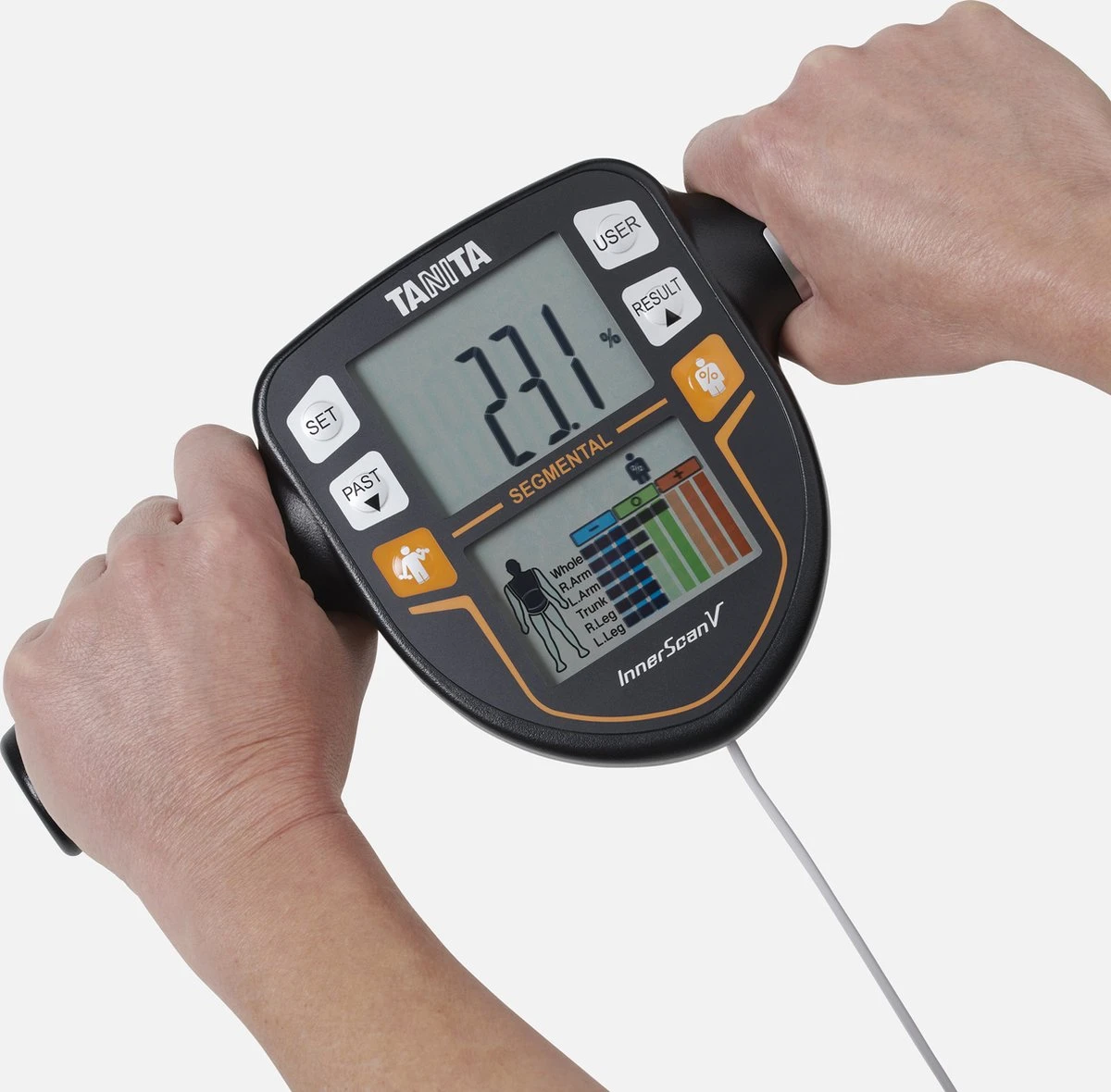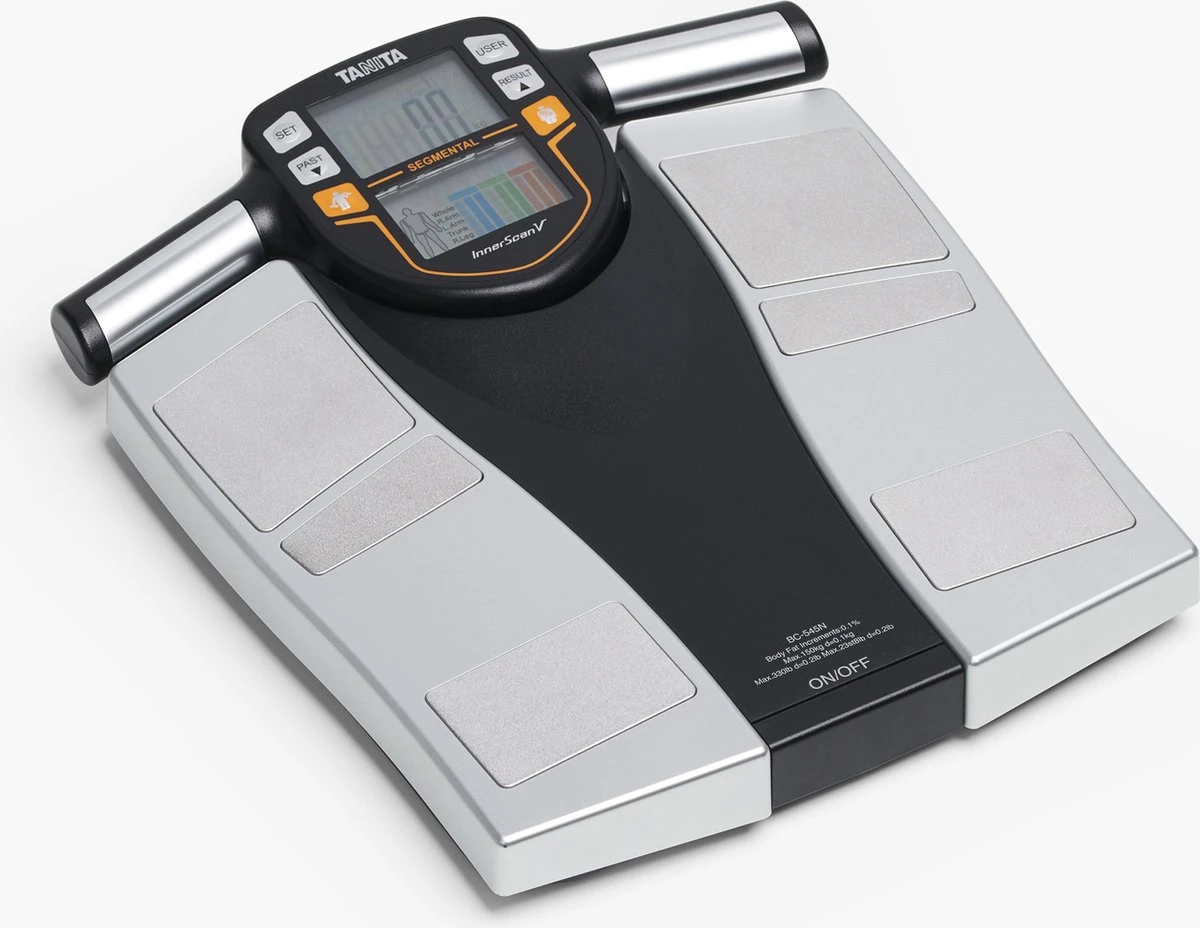 De TANITA BC-545N is een segmentale lichaamsanalyse weegschaal waarmee gebruikers binnen 15 seconden een uitgebreide analyse maken. Dit doen ze niet alleen voor hun algehele lichaamsgezondheid, maar ook per lichaamsdeel (torso, beide armen en beide benen). De resultaten bieden handvatten aan gebruikers om gerichter en accurater aan de slag te gaan met het verbeteren van de gezondheid en het monitoren van de fitness progressie.USP’s – Segmentale lichaamsanalyse weegschaal- Geïntegreerde displays in de handvatten – Monitort fitness progressie De segmentale lichaam analyseweegschaal meet het vetpercentage en de spiermassa van de vijf verschillende segmenten van het lichaam. Met deze inzichten kunnen gebruikers van de TANITA BC-545N hun trainingsprogramma gerichter insteken op de lichaamsdelen die extra aandacht behoeven. De TANITA BC-545N meet niet alleen heel nauwkeurig, maar ook zeer snel en eenvoudig. De handvatten van deze segmentale lichaamsanalyse weegschaal beschikken over geïntegreerde displays, waar de resultaten van een lichaamsanalyse direct op worden weergegeven.